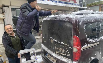 Güne karla uyanan vatandaşlar araçları ve iş yerlerinin önünü temizlerken, belediye ekipleri yollarda ve kaldırımlarda küreme ve tuzlama çalışması yürüttü. Ulaşımın ve yaya trafiğinin aksamaması için çalışmalar devam etti.