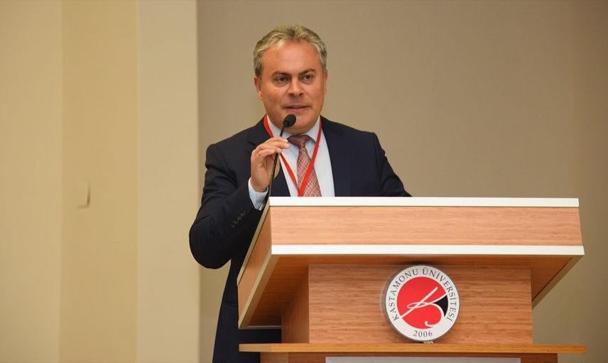 Kastamonu Üniversitesi'nde "Bilim ve Sanat Yolunda 63 Yıllık Bir Seyahat: Nail Tan Sempozyumu" düzenlendi. Vali Yardımcısı Aydın Ergün (fotoğrafta), programda konuşma yaptı.