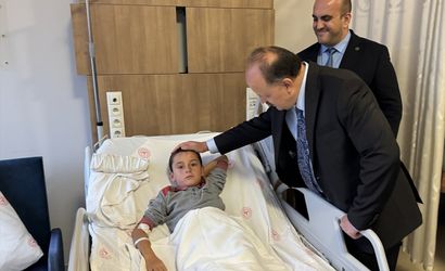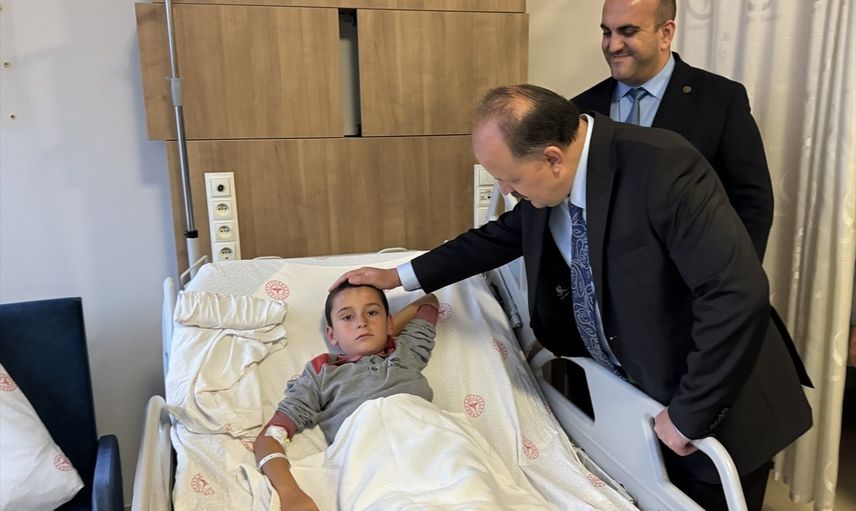 Kastamonu'da okul servisi ile tırın çarpışması sonucu 13 kişi yaralandı. Kastamonu Valisi Meftun Dallı (sağ 2), Kastamonu Eğitim ve Araştırma Hastanesinde tedavileri süren öğrencileri ziyaret etti.