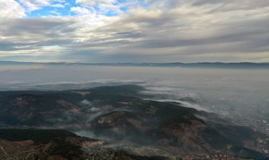 Sis, sabah saatlerinde şehir üzerinde yoğun olarak yer alırken, binalar ve çevre görünmez hale geldi. Dron ile yapılan havadan çekimlerde, sis bulutunun şehri nasıl sardığı ve manzaraların nasıl değiştiği kaydedildi.