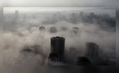 Kastamonu’da hava sıcaklıkları sıfırın altında 5 dereceye kadar düşerken, kentin üzerine büyük bir sis tabakası yayıldı. Görüş mesafesinin düştüğü bölgede sis, bazı noktalarda tabana kadar çöktü. Binalar kısmen sis altında kalırken, kara bulutlarla kaplanan şehir dronla görüntülendi.