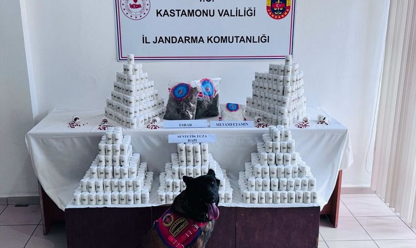 Kastamonu'da uyuşturucu operasyonunda gözaltına alınan zanlı tutuklandı. Yapılan aramada 69 bin 407 sentetik ecza hapı, 975 gram sentetik uyuşturucu ve 485 gram skunk ele geçirildi. Operasyonda narkotik köpeği de yer aldı.