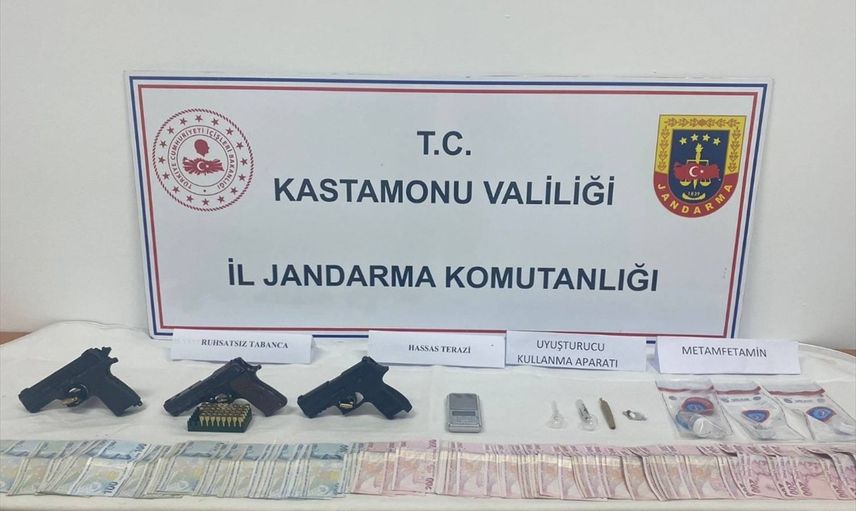 Kastamonu'da uyuşturucu operasyonlarında gözaltına alınan 4 şüpheliden 1'i tutuklandı. İl Jandarma Komutanlığı ekipleri, uyuşturucu imal ve ticareti yapanlara yönelik sürdürdüğü çalışma kapsamında İnebolu ve merkez ilçede yaptığı operasyonlarda, uyuşturucu ve sentetik ecza hapı ile 2 ruhsatsız tabanca ve uyuşturucudan elde edildiği düşünülen bir miktar para ele geçirdi.