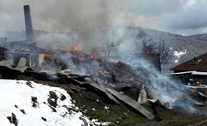 Kastamonu'nun Taşköprü ilçesine bağlı Dereköy Dikmen Mahallesi'nde çıkan yangında iki ev, bir ahır ve bir traktör kullanılamaz hale geldi.