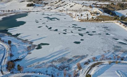 Kastamonu'da Buzla Kaplı Gölet Manzarası