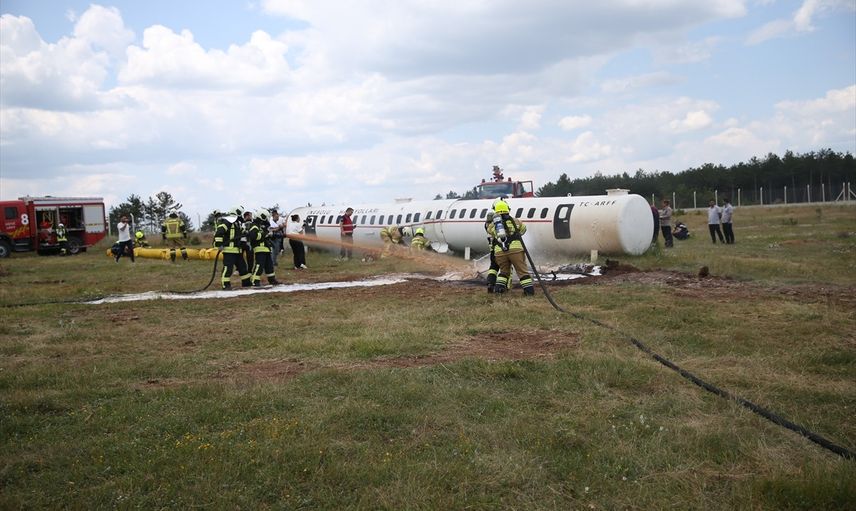 Ergün, tatbikat hakkında şu bilgileri verdi: "Uçağımız kaza kırımı uğradı. Arka kargo bölümünde alkollü ürünlerimiz vardı. 120 yolcu ve 6 mürettebatımızın 113'ü kendi imkanlarıyla kurtuldu. Geriye kalanlardan 10 yolcumuzu ekiplerimiz müdahale ederek kurtardılar. Üç yolcumuz kayıptı, bunları da diğer birimlerimiz saha araması yaparak kurtardılar. Herhangi bir can kaybımız oluşmadı ve başarılı bir şekilde tatbikatımız sonuçlandı."