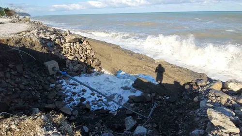 Kastamonu İnebolu'da kar sonrası etkili rüzgar denizde büyük dalgalar oluşturdu; sahil şeridindeki kaldırımlarda göçük ve hasar meydana geldi.