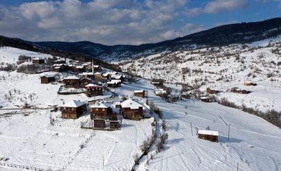 İlçenin ahşap kültürünü simgeleyen bu yapılar, doğanın beyaz örtüsüyle buluşarak büyüleyici bir manzara sunuyor. Evler, havadan çekilen dron görüntüleriyle gözler önüne serildi.
