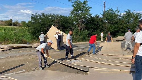Kastamonu'nun Taşköprü ilçesinde devrilen tır nedeniyle Kara yolu ulaşıma kapatıldı, sürücü yaralandı.