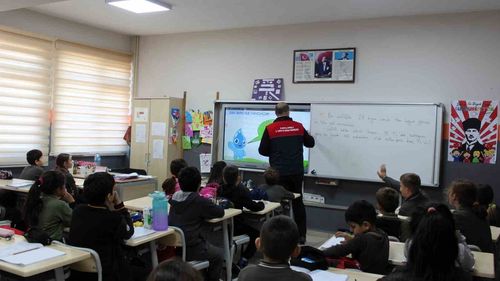 Kavaklı Atatürk İlkokulu'nda 4. sınıf öğrencilerine su verimliliği, su israfının önlenmesi, dengeli beslenme ve balık tüketiminin çocuk sağlığına katkıları anlatıldı.