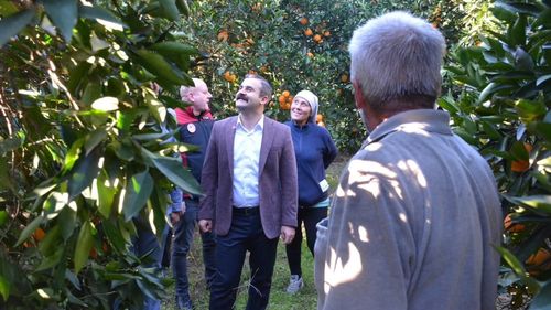 Köyceğiz Kaymakamı Mert Kumcu, Hamitköy Mahallesi'nde coğrafi işaretli 'Köyceğiz Portakalı' hasadına katılarak üreticilerle portakal topladı ve çalışmaları yerinde inceledi.