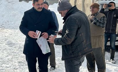 Kastamonu'nun Devrekani ilçesinde, yoğun kar yağışı sebebiyle yolların ulaşıma kapanması sonucu, ilaçlarını almak için merkeze gidemeyen bir hastaya, Devrekani Kaymakamı Hüseyin Çamkerten yardım etti.