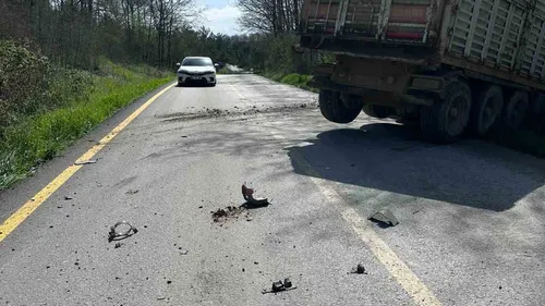 Sakarya'nın Kaynarca ilçesinde Ömerağa mevkiinde kontrolden çıkan yakıt yüklü kamyon makasladı; muhtar Ekrem Karaman, sağlık ekipleri gelene kadar yaralı sürücüye yardımcı oldu.