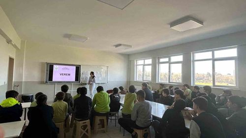 Düzce Sağlık Müdürlüğü destekli eğitimde Kaynaşlı İlçe Devlet Hastanesi, Üçköprü Ortaokulu öğrencilerine tüberkülozun bulaşma, belirti, korunma ve tedavisini anlattı.
