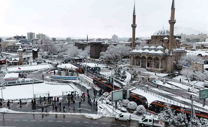 Kayseri'de kar yağışı şehir merkezini beyaza bürüdü