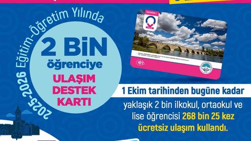 Kayseri Büyükşehir Belediyesi ulaşım kartı desteğinden 1 Ekim'den bu yana 1982 öğrenci yararlandı; 3 ayda 268 bin 25 ücretsiz yolculuk gerçekleştirildi.