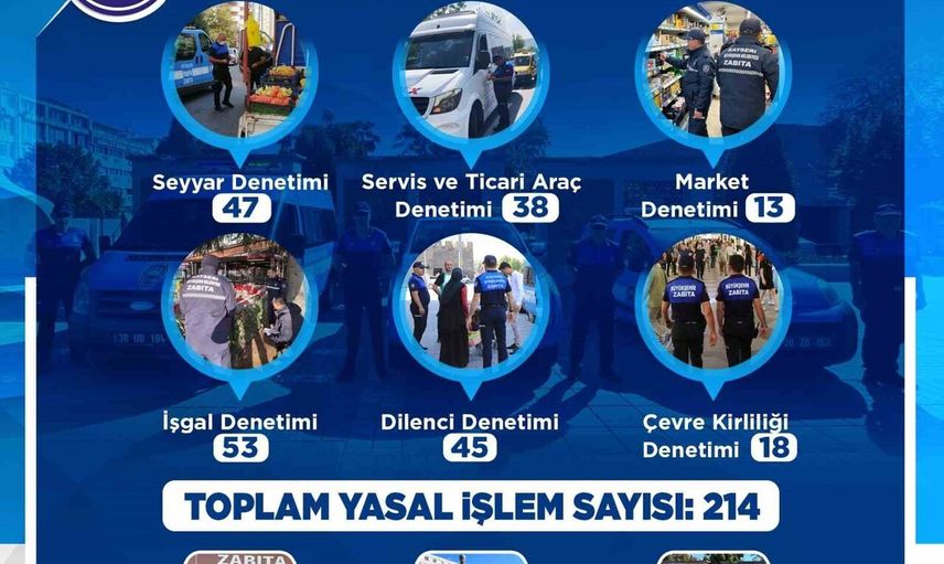 KAYSERİ BÜYÜKŞEHİR BELEDİYESİ ZABITA DAİRE BAŞKANLIĞI, 2025 YILI KASIM AYINDA ŞEHİR GENELİNDE HUZUR, GÜVENLİK VE DÜZENİN SAĞLANMASINA YÖNELİK DENETİMLERİNDE 214 YASAL İŞLEM UYGULADI.