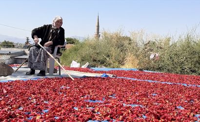 Kayseri'nin Cırgalan Mahallesi'nde yıllardır ata tohumuyla üretilen coğrafi işaretli biber, müstakil evlerin damları, sokak araları ve balkonlarda kurutulup toz biber haline getirildikten sonra sofralardaki yerini alıyor.
