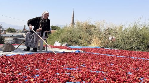 Kayseri Cırgalan'da ata tohumlu coğrafi işaretli biber geleneksel yöntemlerle kurutuluyor
