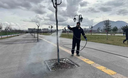 Kayseri'de 2026 sezonu öncesi yeşil alanlarda ilaçlama çalışması