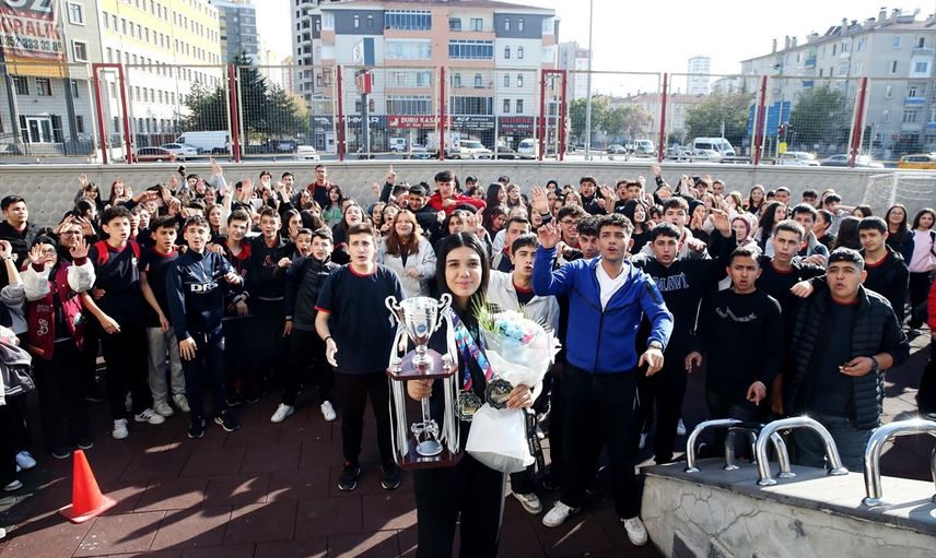 Kayseri'de Dünya Şampiyonu Öğrenciye Konfetili Karşılama