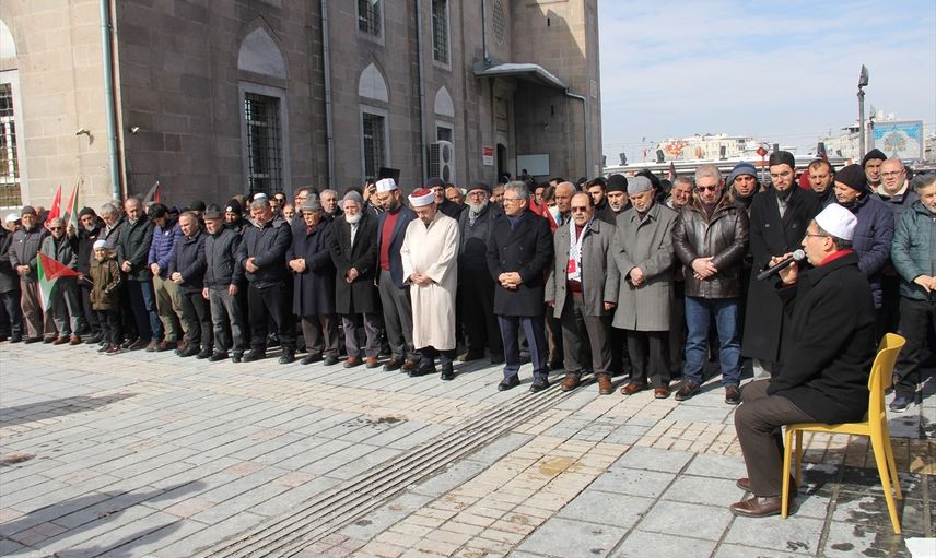 Kayseri'de, İsrail'in saldırılarından etkilenen Filistin'e destek olmak amacıyla bir açıklama yapıldı. Kayseri Filistin Dayanışma Platformu ve Kayseri Gönüllü Kültür Kuruluşları Derneği tarafından düzenlenen etkinlikte, Bürüngüz Camisi önünde bir araya gelen vatandaşlar, ellerinde Türk ve Filistin bayraklarıyla desteklerini gösterdi.