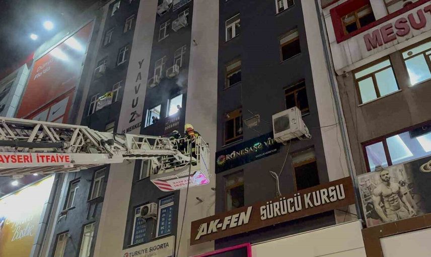 Kayseri'nin Melikgazi ilçesinde bulunan 7 katlı bir iş merkezinin 2'nci katında çıkan yangın, itfaiye ekiplerinin müdahalesiyle söndürüldü.