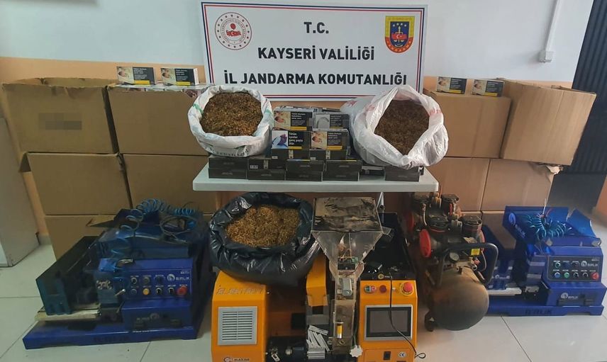 Arama çalışmaları sonucunda ele geçirilen malzemeler arasında toplam 131 bin adet makaron (1.000 adetlik paketler halinde), 100 kilogram kaçak tütün, 3 adet sigara basma makinesi ve 1 adet kompresör bulunuyor.