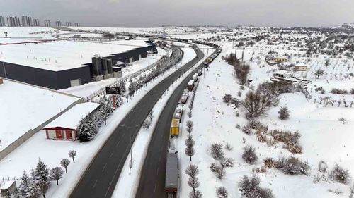 Kayseri'de Kar Nedeniyle Kayseri-Malatya ve Kayseri-Kahramanmaraş Yollarında Tır Trafiği Kapandı