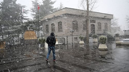 Kayseri'de akşam saatlerinde başlayan kar ve tipi, şehri beyaza böldü. Ekipler yol temizleme çalışmaları yapıyor.