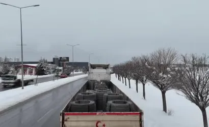 Kayseri'de kar etkisiyle tır trafiği durdu