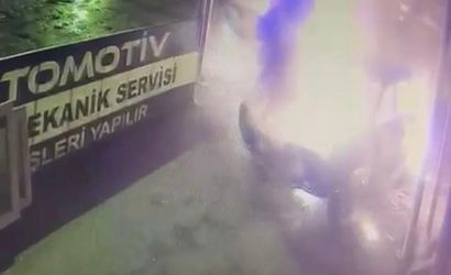 KAYSERİ'NİN KOCASİNAN İLÇESİNDE BULUNAN OTO SANAYİ SİTESİNDEKİ BİR DÜKKANA KAZALI OLARAK BIRAKILAN OTOMOBİL ALEV ALDI. SANİYELER İÇİNDE BÜYÜYEN YANGINDA 2 OTOMOBİL KÜLE DÖNERKEN, YANGIN GÜVENLİK KAMERALARINA ANBEAN YANSIDI.