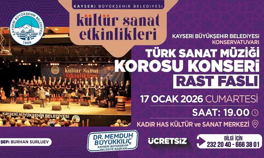 Kayseri'de Rast Faslı Konseri: Büyükşehir Konservatuvarı Türk Sanat Müziği Korosu Sahne Alıyor