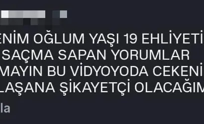 Söz konusu paylaşımın altına yorum yapan sürücünün babası, oğlunun 19 yaşında olduğunu ve ehliyetinin bulunduğunu vurguladı. Baba, videoyu çeken ve paylaşan kişiler hakkında şikayetçi olacağını açıkladı.