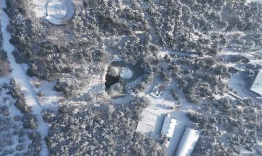 Beştepeler Mesire Alanı’nda bulunan yapay gölet de soğuk havanın etkisiyle buz tuttu. Göletin üzerindeki kaz ve ördekler, karla kaplanan ağaçların altında oluşturdukları görüntüyle görsel bir tablo ortaya koydu; bölge havadan da görüntülendi.