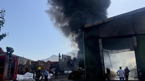 Kayseri'de yangın! Ambalaj fabrikasından dumanlar yükseliyor