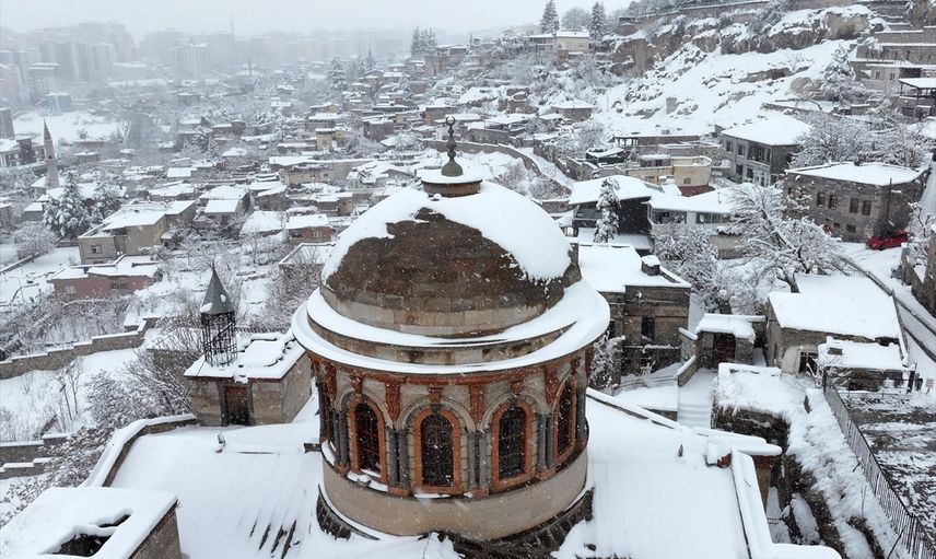Kayseri'de önceki gün akşam saatlerinde başlayan yoğun kar yağışı, aralıklarla devam ediyor. Kar yağışının ardından Merkez Talas ilçesindeki tarihi mekanlar ve Yaman Dede Camisi'nde güzel görüntüler oluştu.
