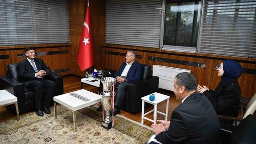 Başkan Dr. Memduh Büyükkılıç, Sesi Görenler 1. Ligi 2025 şampiyonu Kayseri Görme Engelliler Spor Kulübü'nün kupasını makamında kabul etti.
