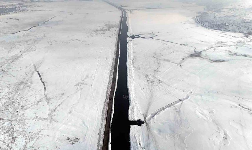 Kayseri Hürmetçi Sazlığı'nda kış: Göl buz tuttu