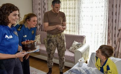 Kayseri İl Emniyet Müdürü Atanur Aydın, şehit başpolis memuru Muzaffer Tufaner'in trafik kazasında yaralanan oğlunu ziyaret etti. Ziyaret sırasında doğum gününü de kutlayan ve Ahmet'e Fenerbahçe forması hediye eden Aydın, aileyle bir süre sohbet edip, hatıra fotoğrafı çekindi.
