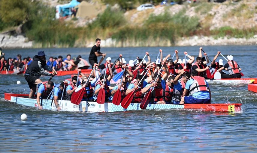 Kayseri'de İncesu Barajı'ndaki Dragon Festivali, seri yarışlarla başladı. Organizasyonda 40 takımdaki yaklaşık 800 sporcu, kürek çekerek 210 metrelik parkuru tamamlamak için mücadele etti.