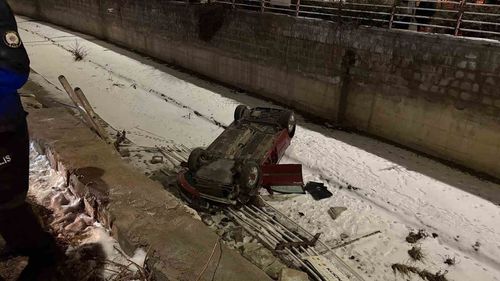 Kayseri Kocasinan'da otomobil 5 metrelik kanala uçtu; sürücü hafif yaralı