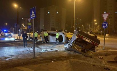 Kayseri'nin Melikgazi ilçesinde, Esentepe Mahallesi Taha Carım Bulvarı üzerindeki bir kavşakta iki otomobil çarpıştı. Çarpışmanın etkisiyle araçlardan biri yan yatarken, diğeri takla attı.
