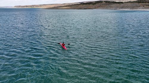 Kayseri'nin ilk lisanslı kano sporcuları, Yamula Barajı'nda Durgunsu Kano Türkiye Şampiyonası öncesinde antrenman yapıyor.
