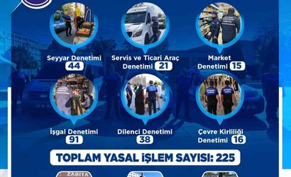 Ayrıca 38 dilenciye yönelik işlem yapılırken, çevre kirliliğiyle ilgili 16 denetim gerçekleştirildi. Toplamda 225 yasal işlem uygulandı.