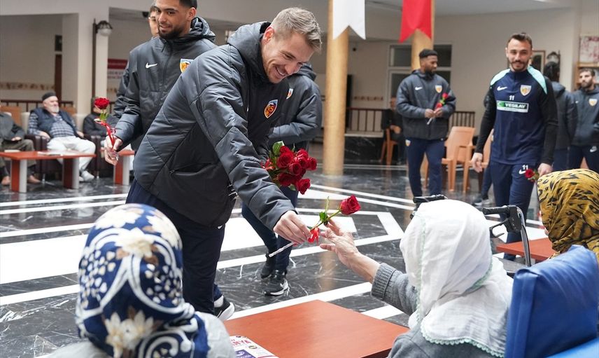Trendyol Süper Lig ekiplerinden Bellona Kayserispor'un teknik ekibi ve futbolcular, Hacı Rukiye Gazioğlu Huzurevi'ni ziyaret etti. Kayserisporlu oyuncular ve teknik ekip, huzurevi sakinlerine güller verdi.