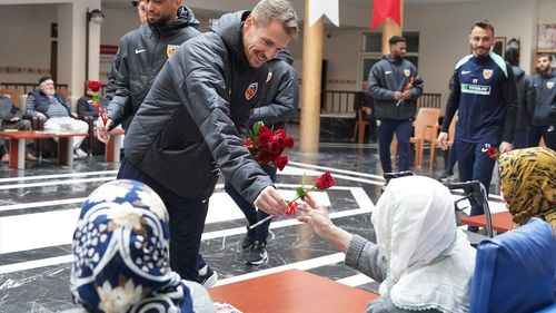 Kayserispor teknik ekibi ve futbolcuları, Hacı Rukiye Gazioğlu Huzurevi'ni ziyaret ederek huzurevi sakinleriyle keyifli anlar yaşadı.