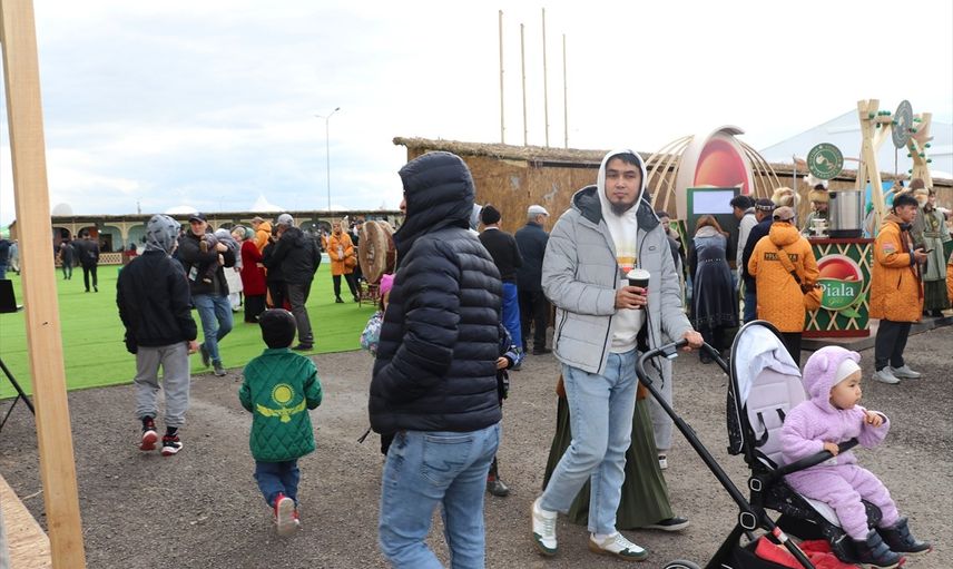 Etno köyde, yüzlerce beyaz çadırda Kazakistan'ın farklı bölgelerinin tarihleri ve özellikleri tanıtılırken, Türk dünyası halklarının ortak kültürüne dair sunumlar yapılıyor. Ziyaretçiler, ata binme, ok atma gibi geleneksel oyunlar oynama fırsatı buluyor.