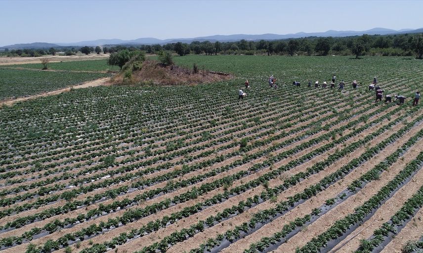 Çanakkale'nin Yenice ilçesinde, Kazdağları'nın eteklerindeki tarlalarda yetiştirilen ve bölgenin en önemli geçim kaynağı haline gelen enfes kokulu çileklerin hasadı sürüyor.