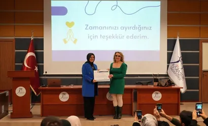 Programın sonunda Lisansüstü Eğitim Enstitüsü Müdürü Prof. Dr. Zeynep Özcan, Doç. Dr. Fatma Betül Kurnaz’a teşekkür belgesi takdim etti.